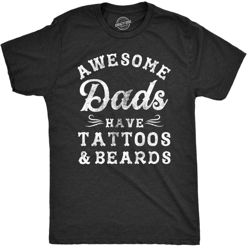Funny Dad T Shirts Manly Tees for Parents Cool Mens Shirts for Fathers Day(Heather Black – Tats Beards)