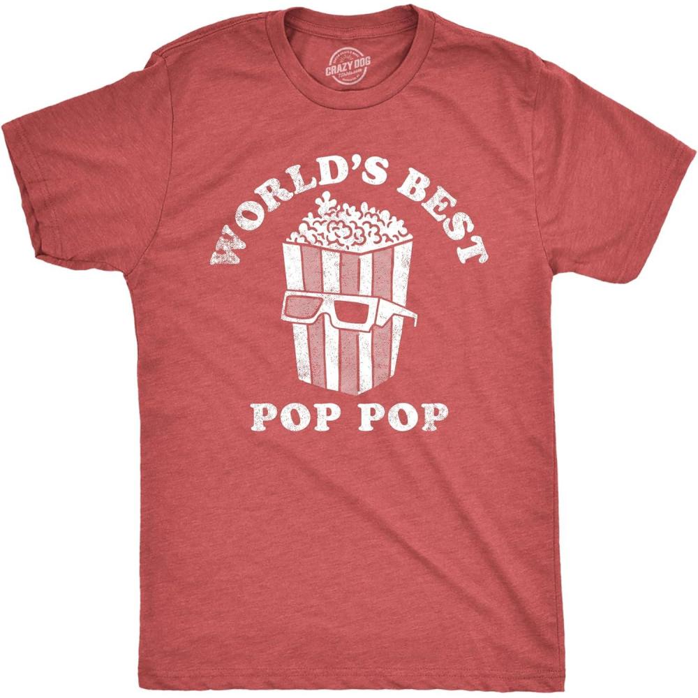 Funny Dad T Shirts Manly Tees for Parents Cool Mens Shirts for Fathers Day(Heather Red – Pop Popcorn)