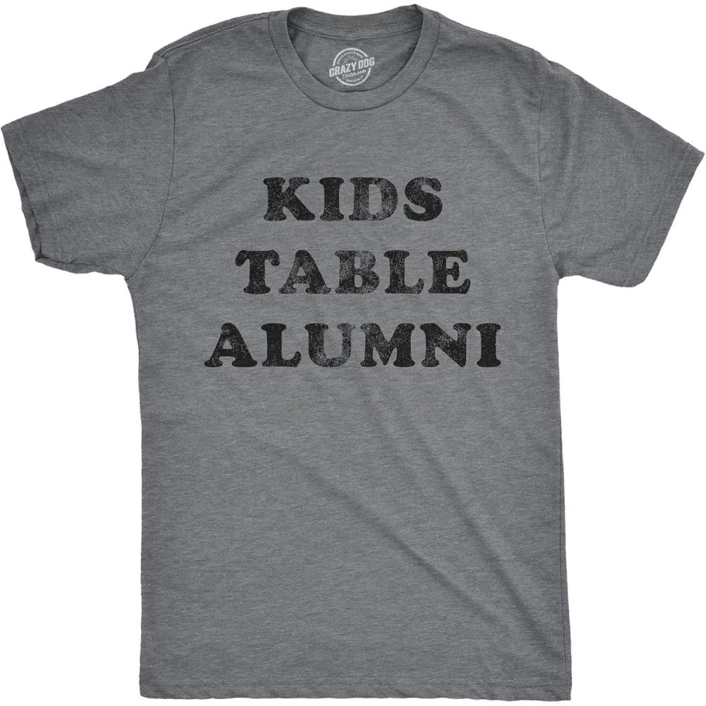 Mens Kids Table Alumni T Shirt Funny Thanksgiving Dinner Sarcastic Holiday Family Tee(Dark Heather Grey)