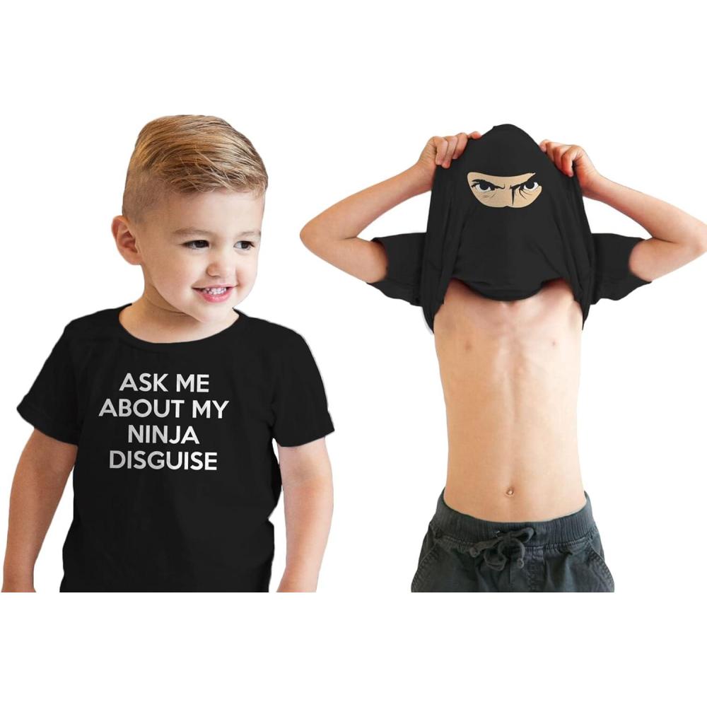 Crazy Dog Youth Ask Me About My Ninja Disguise T Shirt Funny Costume Novelty Flip Tee for Kids(Black)