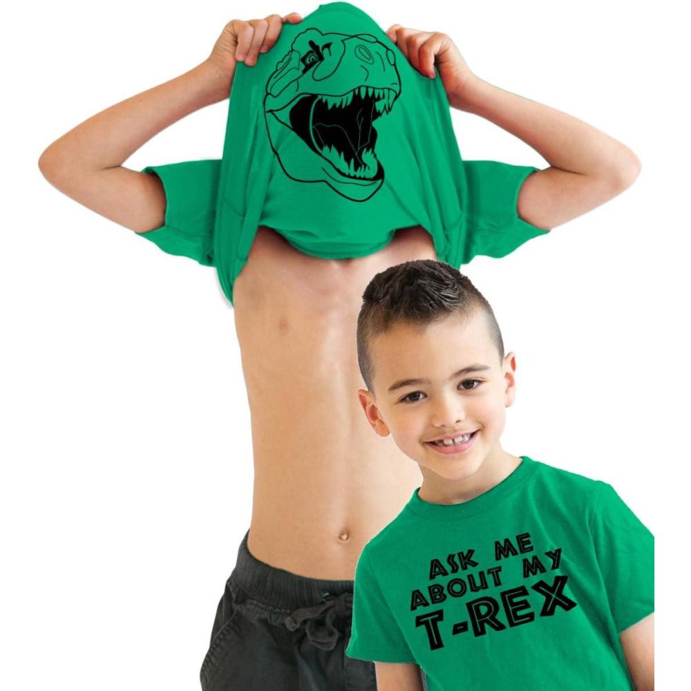 Youth Ask Me About My Trex T Shirt Funny Cool Dinosaur Flip Graphic Print Kids(Green)
