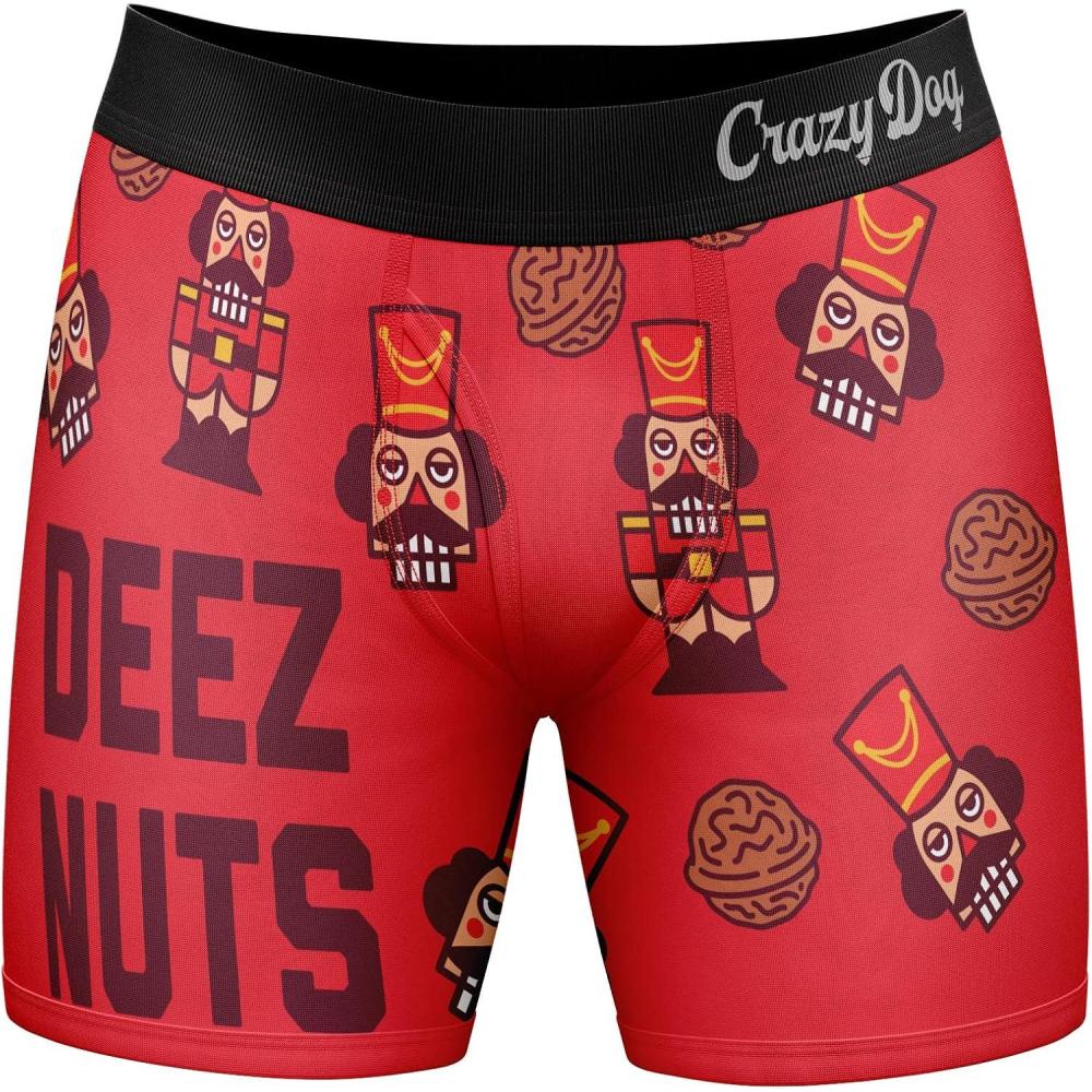 Crazy Dog T-Shirts Deez Nuts Mens Boxers Funny Christmas Nutcracker Hilarious Graphic Underwear(Red)