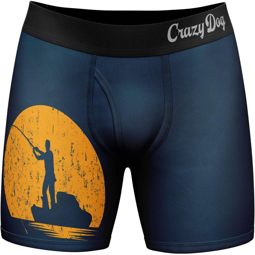Crazy Dog T-Shirts Funny Fishing and Hunting Boxers for Men Sarcastic Deer Hunting and Fishing Joke Underwear for Guys(Pole Dance)