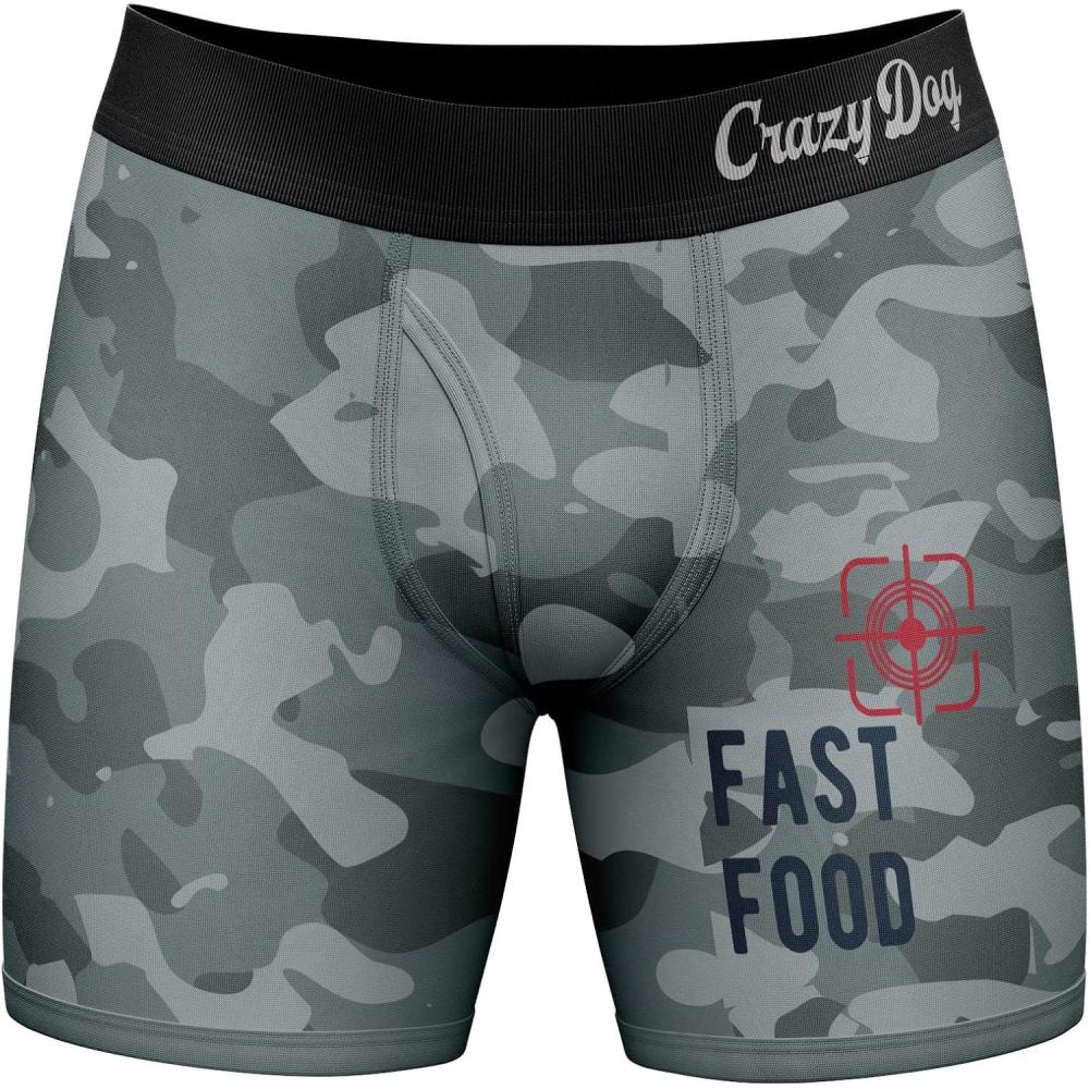Crazy Dog T-Shirts Funny Fishing and Hunting Boxers for Men Sarcastic Deer Hunting and Fishing Joke Underwear for Guys(Fast Food)