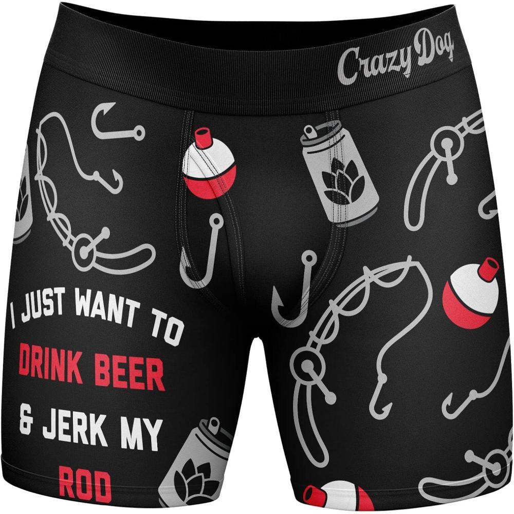Crazy Dog T-Shirts Funny Fishing and Hunting Boxers for Men Sarcastic Deer Hunting and Fishing Joke Underwear for Guys(Jerk Rod)