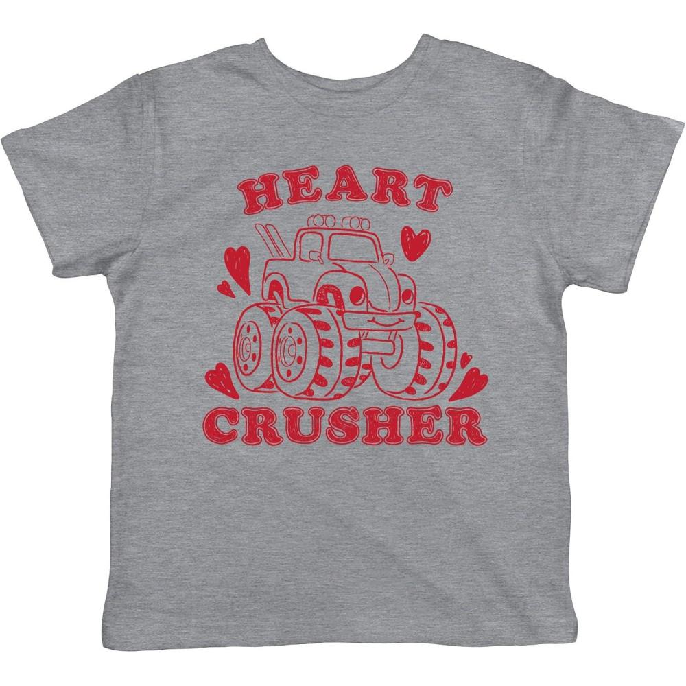 Toddler Heart Crusher T Shirt Funny Valentine’s Day Pick Up Truck T Shirt(Light Heather Grey)