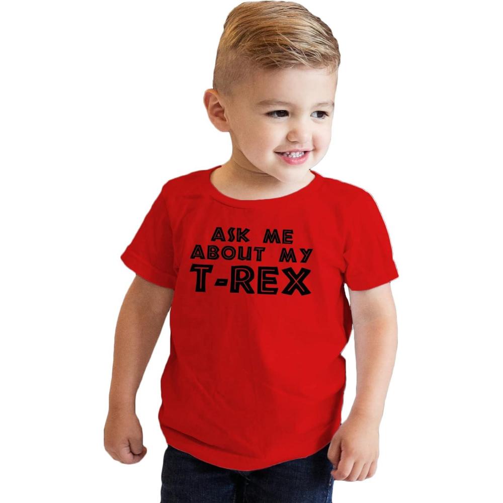 Toddler Ask Me About My Trex T Shirt Funny Cool Dinosaur Flip Humor Tee for Kids(Red)