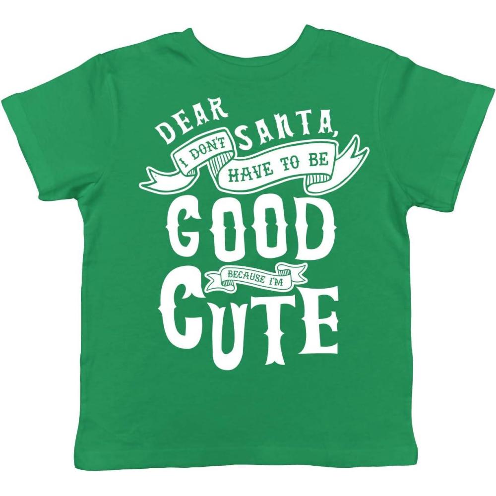 Toddler Dear Santa I Don’t Have to Be Good Because Im Cute T Shirt Funny Christmas Tee(Green)