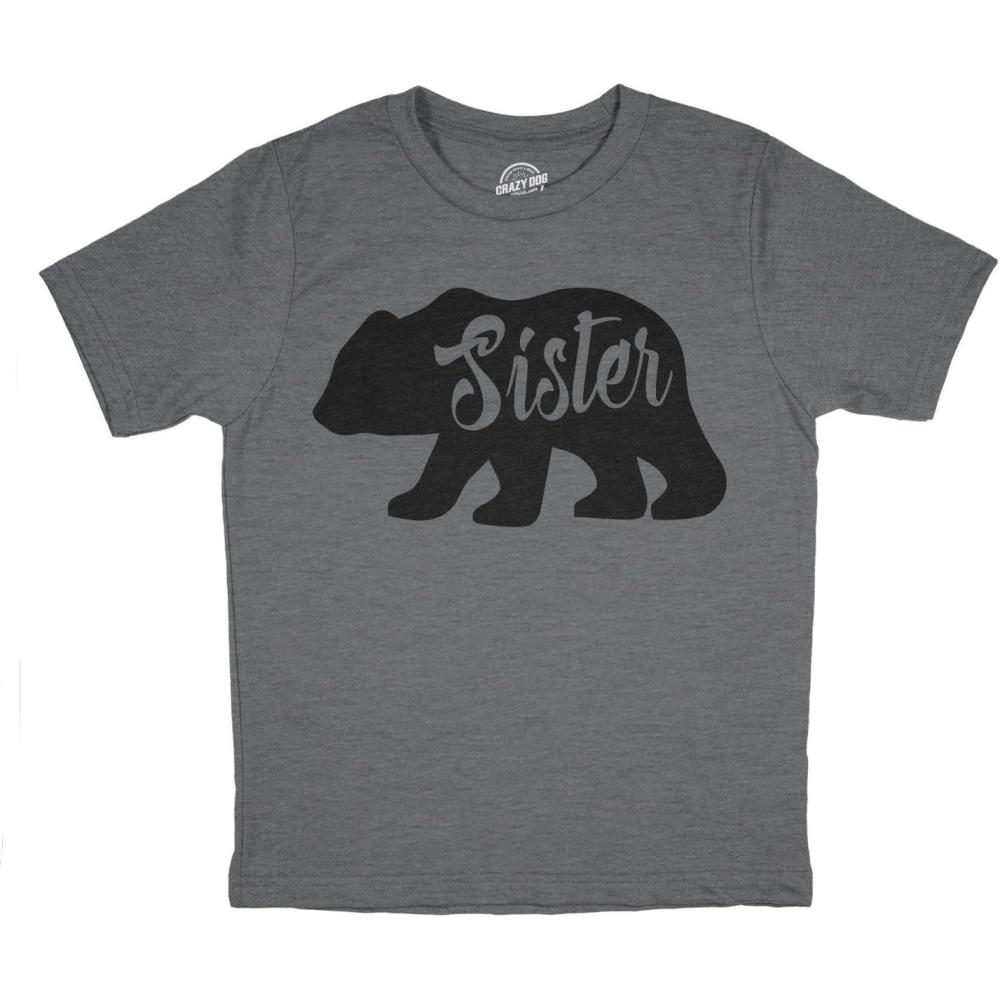 Toddler Sister Bear T Shirt Cute Funny Family Tee for Little Sister(Dark Heather Grey)