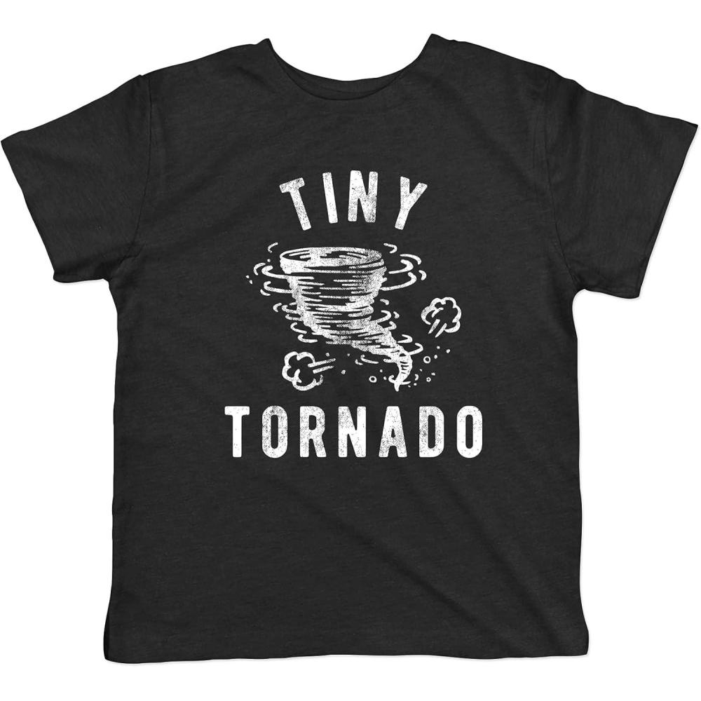 Toddler Tiny Tornado T Shirt Funny Chaos Crazy Littke Kid Graphic Novelty Tee(Heather Black)