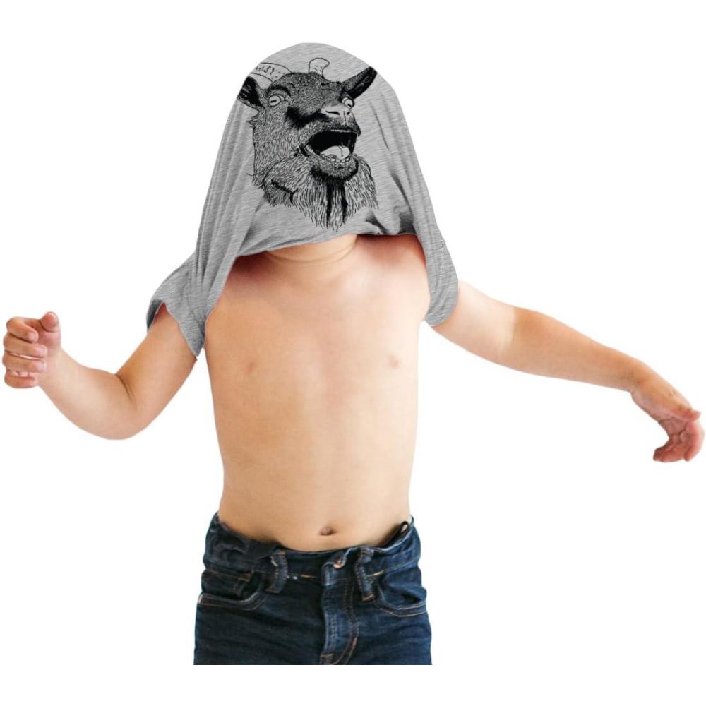 Toddler Ask Me About My Goat Funny Animal Flip Up T Shirt for Kids(Light Heather Grey)