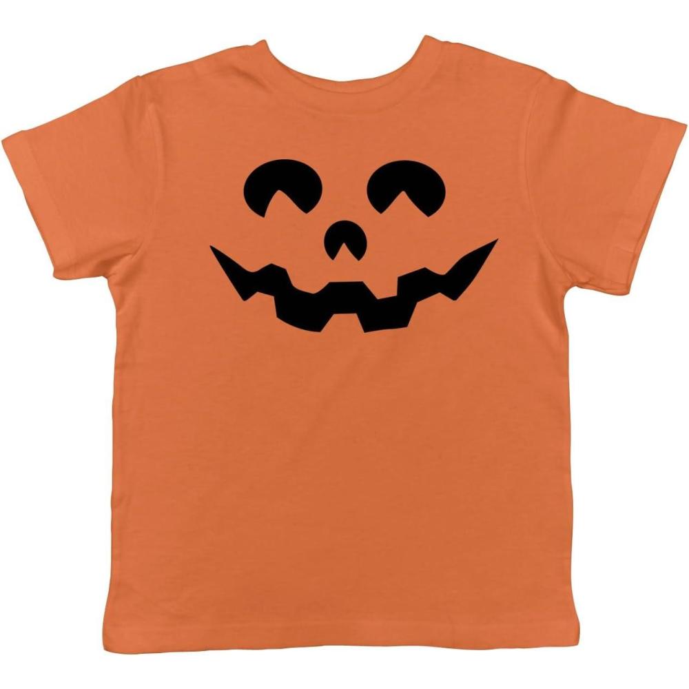 Toddler Cartoon Eyes Pumpkin Face Funny Fall Halloween Spooky T Shirt(Orange)