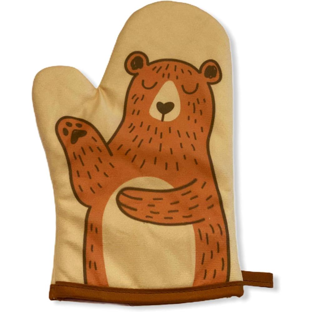 Bear Oven Mitt Funny Puppet Hand Cute Bear Kitchen Graphic Oven Glove Funny Graphic Kitchenwear Cool Animal Novelty Cookware Yellow Oven Mitt(Oven Mitt)