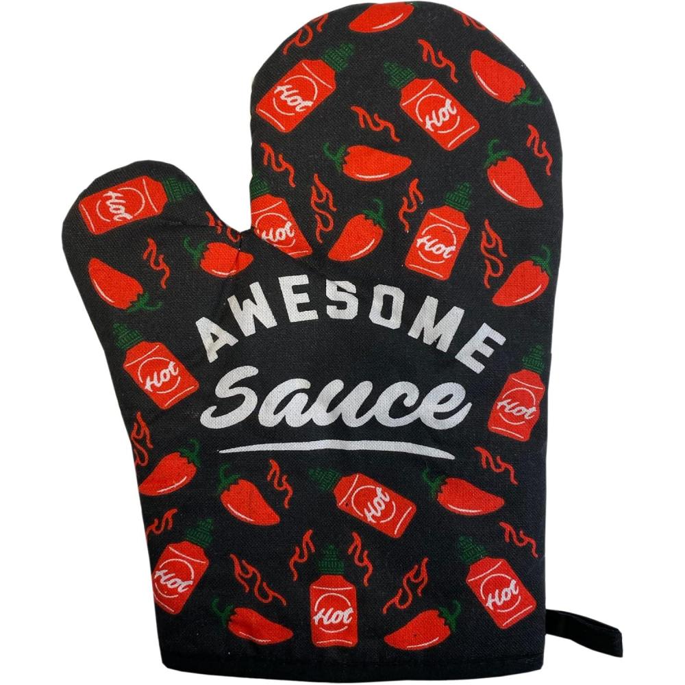 Awesome Sauce Oven Mitt Funny Hot Sauce Peppers Graphic Novelty Kitchen Glove Funny Graphic Kitchenwear Cool Food Novelty Cookware Black Oven Mitt(Oven Mitt)