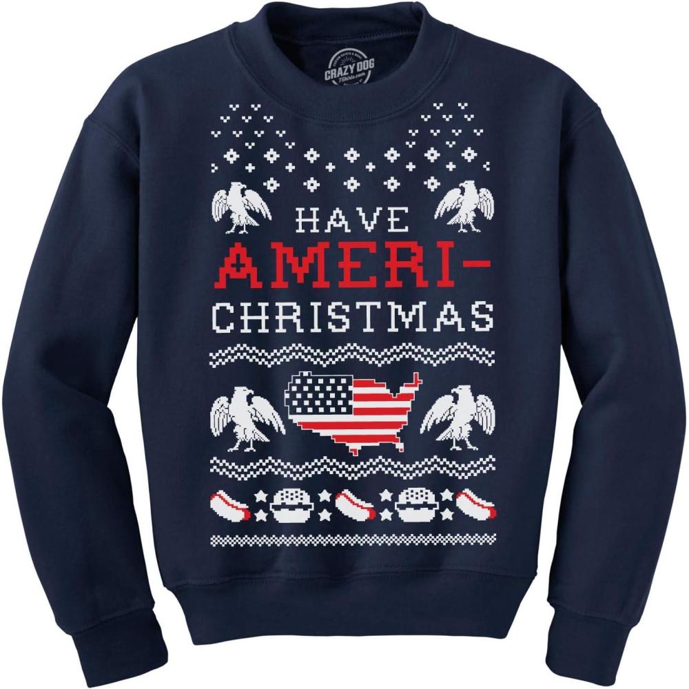 Crazy Dog T-Shirts Crew Neck Have Ameri-Christmas Shirt Funny Patriotic Sweatshirt
