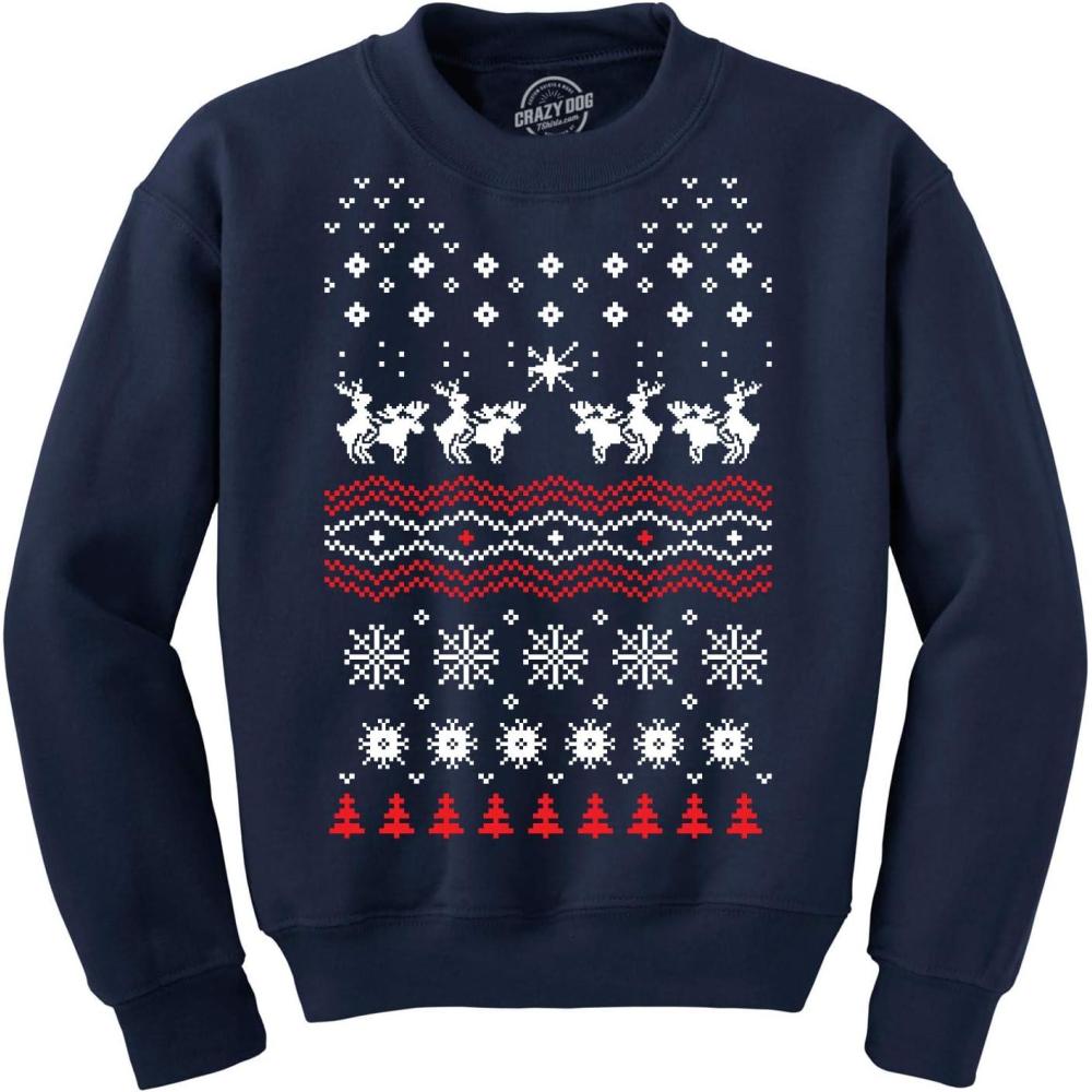Crazy Dog T-Shirts Humping Moose Funny Ugly Christmas Holiday Xmas Sweatshirt Offensive Party Tee(Navy)