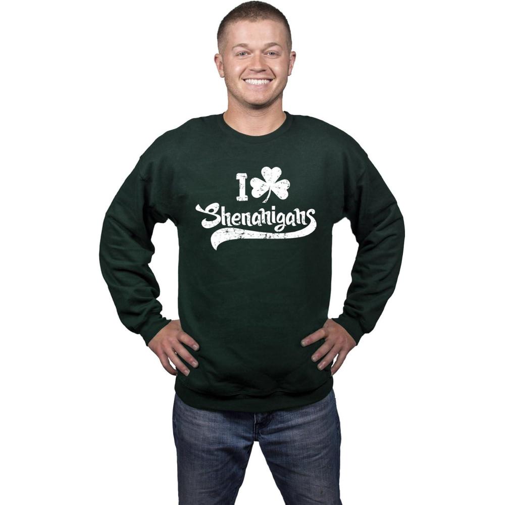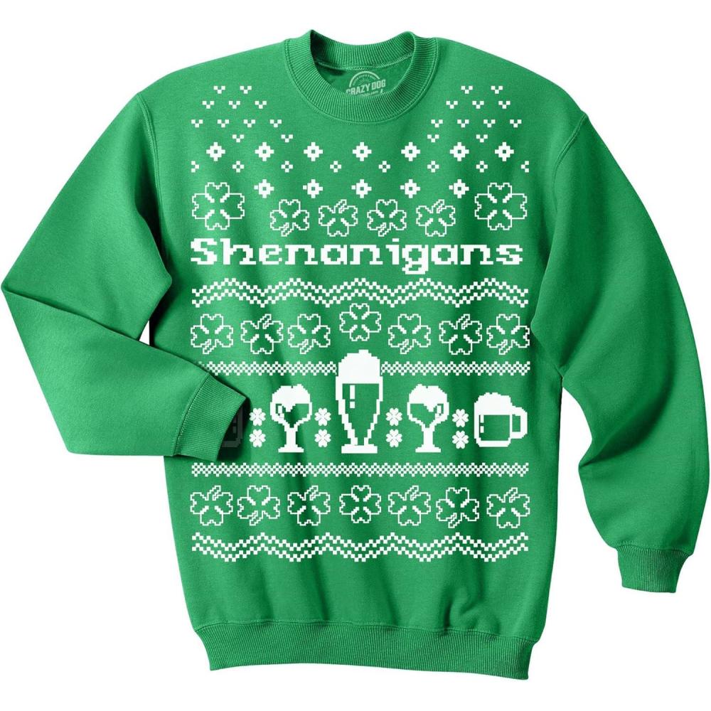 Crazy Dog T-Shirts Shenanigans Ugly Christmas Sweatshirt Funny Drinking Cool Irish Clover Shirt(Green)