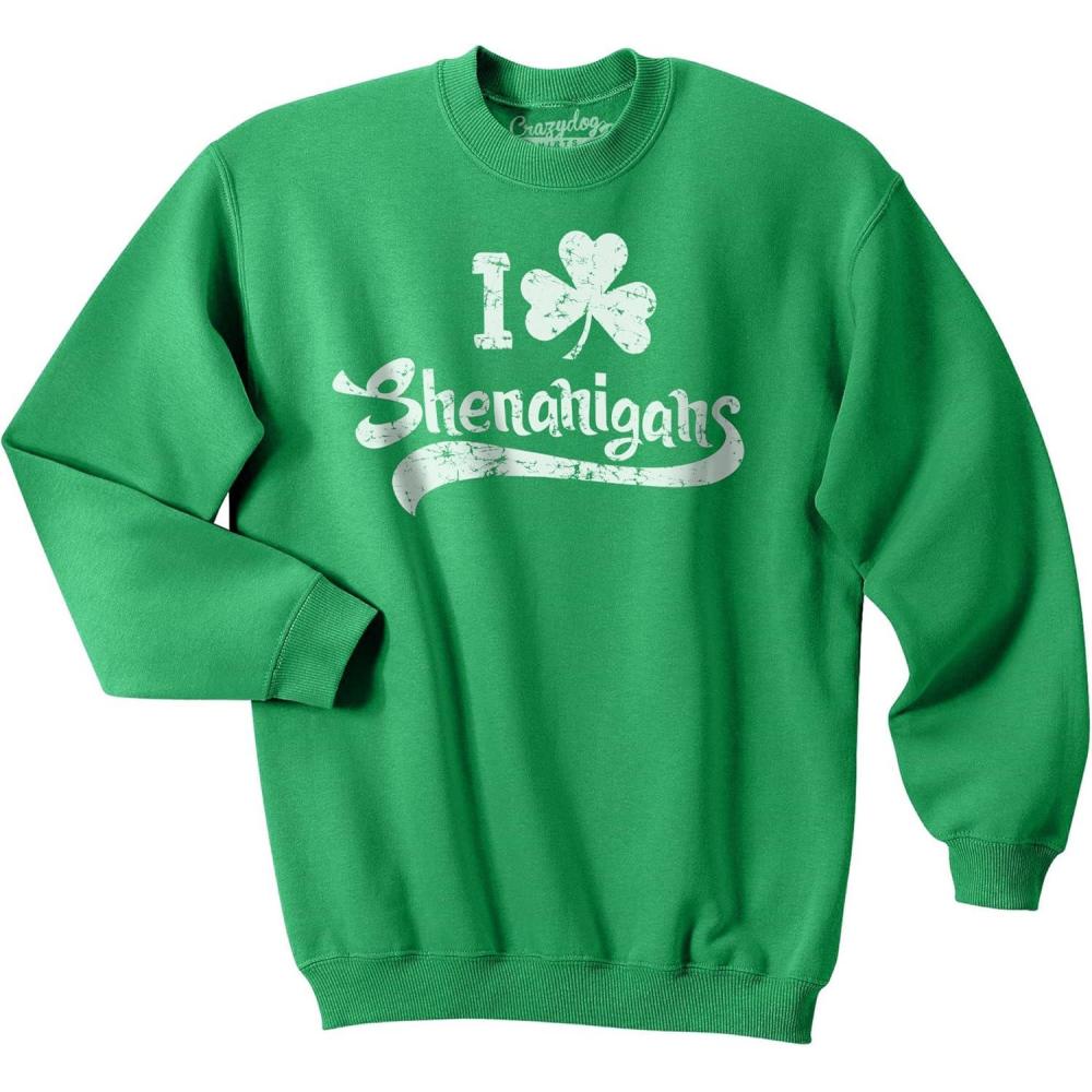 Crazy Dog T-Shirts I Clover Shenanigans Funny Saint Patricks Day Clover St Patty Unisex Sweatshirt(Green)