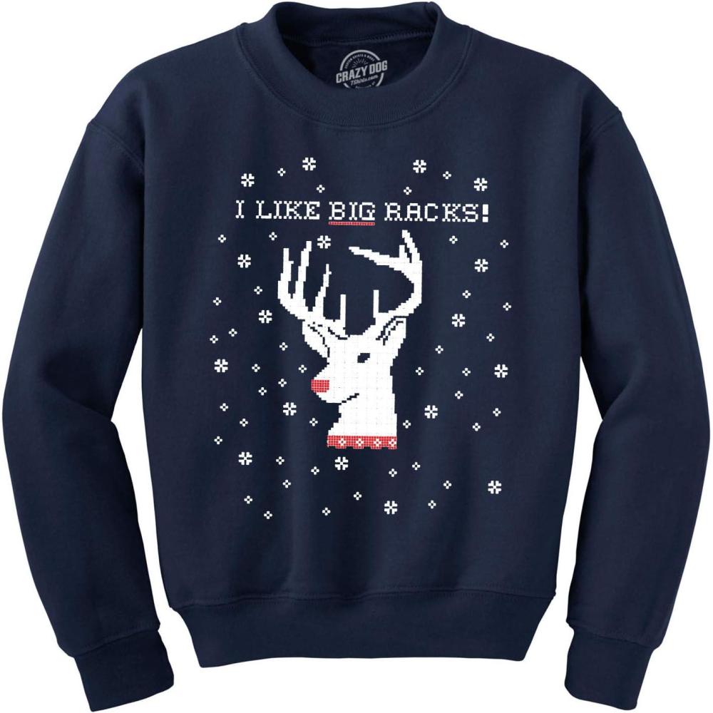 Crazy Dog T-Shirts I Like Big Racks Funny Unisex Hunting Ugly Christmas Crew Neck Sweatshirt(Navy)