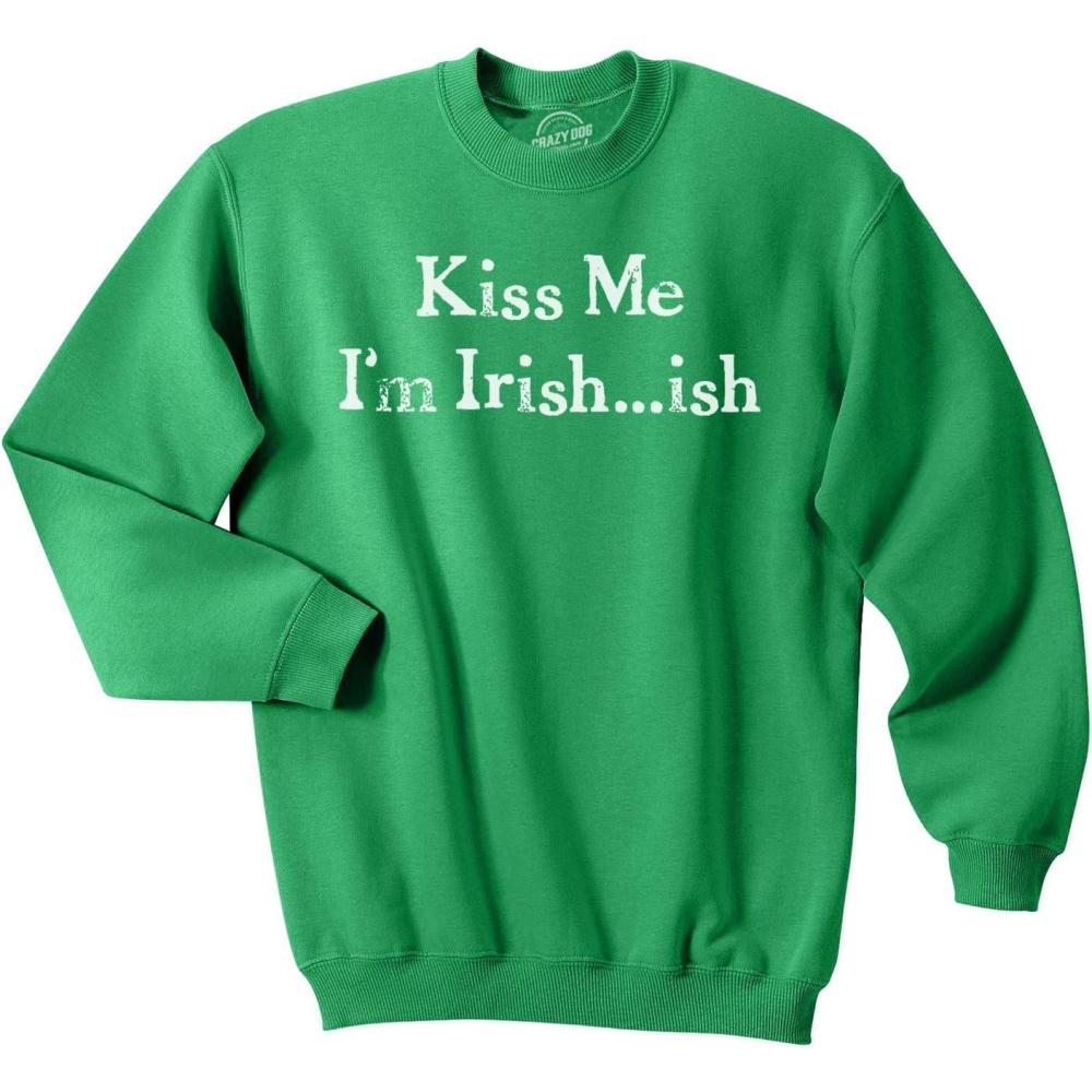 Crazy Dog T-Shirts Kiss Me Im Irish ish Funny Saint Patricks Day St Pattys Shamrock Sweatshirt(Green)